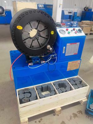 Эта 4-дюймовая гидравлическая резиновая шланговая резинка имеет специальную конструкцию с 16 кружками, удобно висящими на стороне для легкого доступа.эта промышленная машина синего цвета обеспечивает эффективную работу для различных приложений крампирования шлангов.